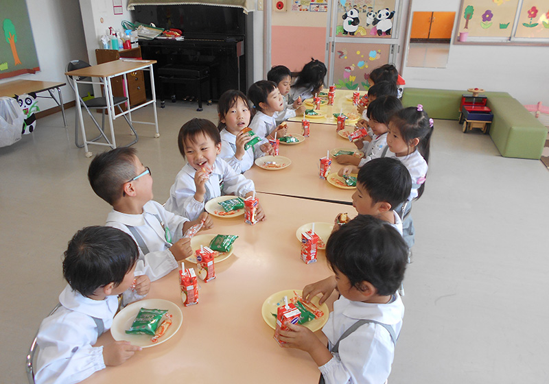 | 保育では | 園庭でのお遊び・粘土遊び・幼児体操・リズム遊び・お絵かき・運動遊び・製作活動・絵本/紙芝居の読み聞かせ・知育玩具を用いたお遊びなど |